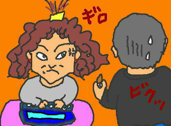 えーっ。現在16:30ってところです。今、朝食兼昼食の毎日果実 →グリコ社製 ミックスベリーを食べつつこれ書いてます。自分の食う物は自分で勝手にと言うことのようで・・。ああ。私、今日は家にいるんだけどなあ。ってことで私は員数外になっているようで家人は知らないウチに食べているようです。と愚痴を言っているわけではなく。まあ。これは100歩譲って不問にするんだけど・・。息子のバイクをまたまた見に行って参りました。で、下取りのスクーター持ってって。で。50万ほどするのと。25万ほどのバイク。悩んでいるわけで・・。で、ちと安い方で見積もりしてもらったら。はい?45万超・・何で?えー。任意保険だけで10万。ほえーっ。その他諸費用・・。てことは50万バイクの方は概算で75万。おとろしい。とまあ。家に帰ったわけです。ずだい。姪がバイクで亡くなり今回買いたがっている長男の同級生も同じくバイクで亡くなりバイク好きだった私はちと、ちゅうちょ気味。カミさんは猛反対・・ってイメージだったんだけど・・・。買ってあげればいいじゃん。なわけで。家に帰って息子がその話をすると。75万ぽっち。出してあげればいいじゃん。↑かなり怒った口調で・・。長男があれもいいかな?これもいいかな?と悩んでいるのに欲しいのはそれよそれ。と決めている。75万ぽっち。にもあきれたけど・・。いかにも私がより安いのを買わせようとしているっていう態度で責める責める。何で私が責められなきゃいかんのだ?より安く買えるように、交渉しているのに。カミさんは値引きとか一切考えないタイプ。理由 恥ずかしい行為だと思っている。いや私も恥ずかしいときがあるけど・・。けど、それは言うときに何となく気恥ずかしいっていう恥ずかしさであって行為そのものがはずかしいこととは思えないのだが。とにかく欲しいのはそれなんだから買ってあげない。←買ってやれの意・・方言です。語尾を上げて発音。そればっか。おめえが行って来いよ。バーローなわけで。ピアスがどうこう聞ける状態ではないのでした。長いここまで言い訳のための文だったのか。でね。でね。私今日は部屋の片づけをちっとしたんです。でね。修学旅行の時の鞄がまだ出ていた・・一体いつから出しっぱなし?でね。寝室の押入に仕舞いに行ったんですよ。で鞄置き場の横50センチのいちに衣装ケースがあってその上に置いておいたら・・。来ましたカミさん。「なんで私の衣装ケースの上に鞄があるわけ?」顔も怖い。私が稀代の大悪人みたいに。怒る怒る。最後は嫌みに「はーっ。」みたいにこの人になに言っても無駄だってなふうに首をふり・・去って行った。ピキーッ。とした私。と今度は愚痴愚痴グチ言ってます。はい。他に言うところないし・・。怒りモードなけで・・。そう言いつつも掃除をしつつ。コーヒーの淹れ方っていうチラシ見つけてカミさんこれ知りたがっていたなあ。とっといてあげよって、思ってしまう。コーヒー教室もやってるようだし。甘い。甘いぞ自分。ってことで現在10:30です。学期末のテストの○つけしたり。この間の結婚式のビデオ編集してDVDに焼いてました。コーヒーのチラシ。喜んでました。で、何度か耳に手をやるのでおっ。もしかしてと思いましたがまだしてませんでした。明日美容院へ娘と行くようなのでいよいよかと・・。今日は髪くしゃくしゃで頭のてんこちょで髪をなんと普通の輪ゴムで留めてました。色気ないことおびただしい。「明日、桔梗丸(娘)の方が先に終わるから、迎えに来てよ。」↑強い口調。テレビ真剣に見てて。私がアーモンドをコリッとやったらジロッと睨んでテレビにずるずると近づいたりなんかり・・。なんか態度わりぃ。やっぱりバータレだあ。と。そだ。バカブスカミさんの絵 描いたるわい。ってずばんネタのパクリだけど・・。ワタシノ ヒソカナ テイコウカミサンノ ケイタイアドレスニュウリョクスルサイbヲ サイショニ ツケテカミサンノ ナマエヲイレタ。ブスノ bデスカラ。ヘ ヘンダ、マイッタカ!マイラナイダロウナ・・・。
