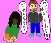 なんかやな事件ばかりで弱いものばっかねらやがってばかたれ!失礼しました。それにしても許せないような事件ばかり起きてて基本的には時事物は扱わないんだけど学校にもいろいろ調査があったり・・。保護者の声があったり。小学生みたいな弱いもの狙うような犯行は許せない。指導の要請や防犯ブザーの調査など学校に来ます。防犯ブザー今日調べたらクラスでもっている子1名のみ。前任校では全員に持たせていたので持っているものと思ってました。前任校パトロールも当番制でやってたし・・。学校によって意識が違うのか??とにかく子供たちに防犯意識はもたせたいと。がこれは人を信じるなっていう何だかやるせない指導でもあるわけで・・。とってもやなんですが・・。でもしないといけない。一方子供らは我が身に降りかかるなんて気持ちはさらさらなく・・。ちと、親の気持ちになって話をしました。「自分の子が、こんな被害にあったら、親はどれだけ悲しいか。」「先生の娘がこんな事件にあって、殺されたら・・犯人殺す。」ちと、言い過ぎた。と思いました。でも、それくらい悲しいってことを伝えました。さすがに子供らも真剣な目になりましたが。やっぱ言い過ぎたと・・。通学路の地下道に、浮浪者がいたり家まで1時間歩く子がいたり近辺でも不審者情報があったり田舎とはいえけっして安全なわけではない。各地でいろいろな取り組みをしているみたいですが・・。どうにかならんものでしょうかね。ふーっ。ああ。やだ。では、気分を変えて画像掲示板の方にnaoさんの紹介してくれた似顔絵作りのサイト紹介があります。みなさんも是非チャレンジしてください。けっこうおもしろい。ちなみにこれが私が作った私の似顔絵です。↓おかしな輩もいるけれどこんないい人達だっているぞ。みんなで子どもを守ろう。子どもを見かけたら声をかけてください。「気をつけてかえってね。」「まっすぐかえんなよ。」「暗くなる前に帰りなさいよ。」不審者と思われるかもしれないけど・・。気にしない。気にしない。