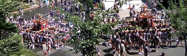 午後3時半頃,家の近くを御輿が通ったのでちょっとベランダから覗きました。