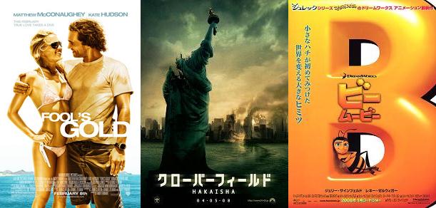 観た映画は,ビームービー,クローバーフィールド,ALWAYS 続・三丁目の夕日,Fool's Gold です。
