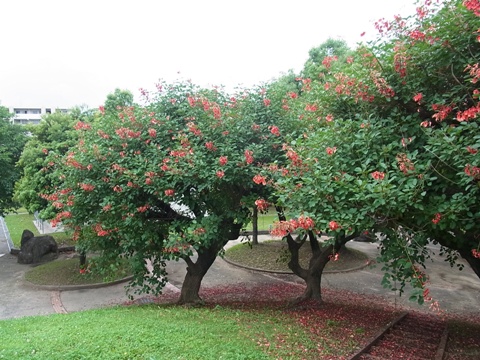 撮影日 2011年6月25日撮影地 福岡県福岡市マメ科デイゴ属。亜米利加梯梧。別名、カイコウズ(海紅豆)。南米原産。福岡市内のある公園で見つけました。大きな真紅の花が目立ち、いかにも南国の花と感じます。ひとつひとつが大きいのですが、葉も花もマメ科の特徴を有しています。鹿児島県の県花だそうです。