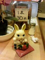 まさかの「うさぎ」ネタ連投昨日の火曜日は「楽」じゃなくてこちら御大K氏も3分後にご来店燗酒(菊正宗250円)をもらうとしてアテにエビの天ぷら(300円)常連さんがホワイトボードをさして1番のおすすめはピーマン肉炒めで2番目は「ユビの天ぷら」だよと言ったそう言われりゃそう見えなくもないな2杯目から菊正宗の冷酒(300円)Kさんまでこれ呑みだしたからそこで在庫切れんで、女将が奥から出してきたのは菊正宗の瓶入り樽酒(言葉の矛盾は気にしない)それもなかなかうまかった
