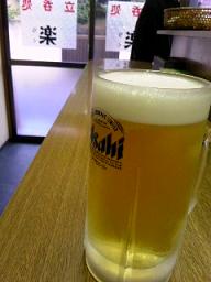 「深江橋駅」いままで生きてきた中で何の繋がりもない地なんとなく行ってみた酔ってたのもあったんやけどね時間は9時頃、この駅付近で立ち飲みがなければ隣の緑橋に「得一」があったはずだから、そっちに行ってもいいやと考えながら駅のまわりをうろうろしたら、あるんだな立ち飲み屋。「もうすぐ閉店だけど良いですか」と聞かれたもちろん一杯呑めればいいんで、立たせてもらう「厚揚げと牛肉の煮物」と生ビール大瓶380円、チューハイ300円、酒280円焼酎250円は、ワサビ、金魚、生姜などあるアテは枝豆250円から一番高いのが鶏モモ焼き400円300円台がほとんど。おかわりでワインチューハイ、チューハイに色付けで赤ワインを入れてる、そのまんま。カクテルみたいで綺麗やね店内は20人くらいは入れそう、反対側で地元の常連さんっぽい4名が飲んでおられたヨッパライがおねいさんネタで盛り上がる姿はどこの店でも一緒やね、楽しそうでいいもんだ