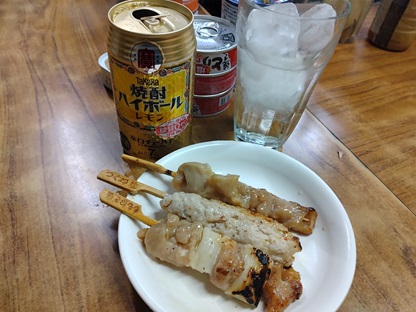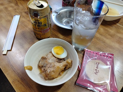 水曜日、終業後は職場から中本酒店さんに直行だ先客はO多さん、Oさん、K隊長、YさんOさんに奢ってもらおうとするYさん、情けないO田さんがわりとすんなり帰ったように思う多分、先週わしに麻雀で負けたせい、きっとそうだなお菓子の「はまかぜ」はOさんが取り寄せたもの、これ美味しいね焼酎ハイボール、翠ジンソーダ、手羽煮、ベーコンエッグ