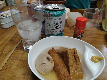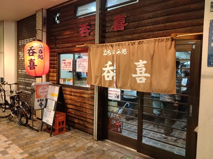仕事初めの月曜日、初日はあいさつ回りの会社の人たちのおかげでほぼ仕事にならず、一日が過ぎた京阪萱島駅界隈にも出勤しなくてはいかん1軒目は高架下の立ち飲み「呑喜」さんなんだかんだでやっぱりお客さんは多いこの日は振る舞い酒をいただいてスタート瓶ビールとおでん、ここのスジは好きあとでかき揚げとハイボール入口近くに立ったのがちょっと失敗お客さんが来るたびに戸を開けるんで寒くてかなわん