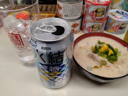土居駅から京阪電車に乗って萱島駅に到着「大塚酒店」さんで飲みますメニューにかす汁があったので注文、それと氷結無糖氷結を追加してアテはかっぱえびせん麻雀の話をするお客さんがこの日もいた毎日来てるんやろか、マメやねぇ他に自称ユーチューバーな人が飲んでた的外れなことを言う人で、面白そうだから登録名を聞いたけど氏の言うチャンネルは存在しなかったわしが聞き間違えたんやろか、ちょっと気になる