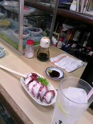 チューハイ×2とタコ、マドラーがやっぱり邪魔