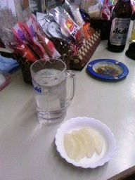 焼酎水割り×2、お漬物と乾き物