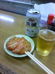 右の壁際、冷蔵ケースから淡麗と練り物を貰う