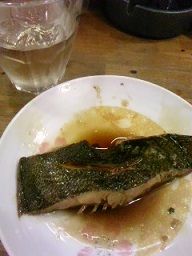 チューハイ×2と鶏肝、後でワイン×2とカレイ煮つけ