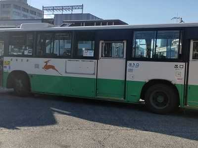 駅までは無料の送迎バス、奈良らしく鹿がデザインされてる