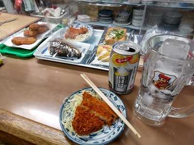 大瓶と缶チューハイ、だし巻き、とんかつ(半分)