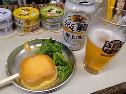 淡麗とやっぱりおでんの菊菜と梅焼、アホの一つ覚え