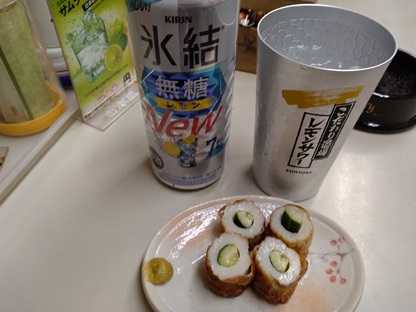 氷結無糖ロング缶とショート缶、ちくきゅう、ピーナッツ