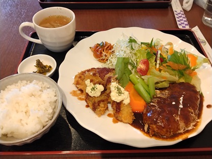 わしはハンバーグとカキフライのセット、嫁さんはハンバーグとトンカツのセット