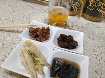 飲み物2杯とアテ4種盛り、あとから焼酎1杯追加