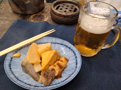 ビールとアテはおでん風、中本酒店みたいなアテやね