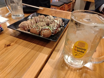 ハイボールとたこ焼きで乾杯だ