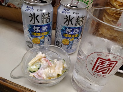 氷結無糖2、タコ、マカロニサラダ