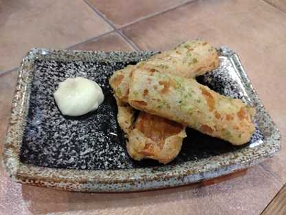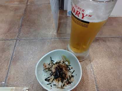 ビール、芋焼酎、山芋短冊、ちくわ磯部揚げ