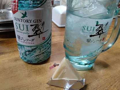 焼酎ハイボールとジンソーダ翠、シュウマイあんかけ、6Pチーズ