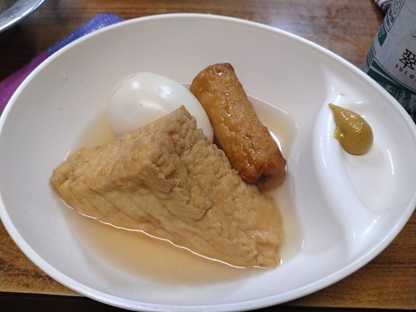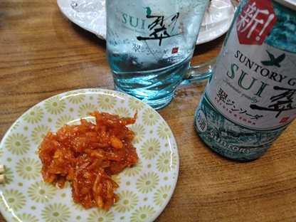 焼酎ハイボール、ジンソーダ翠、おでん、スルメキムチ