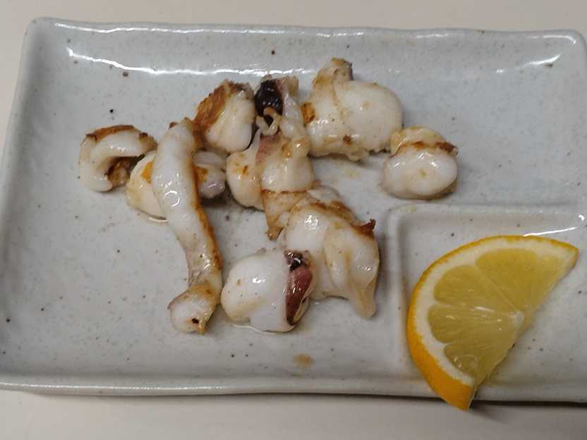 というわけでアテは鶏ハートたれ焼、とゲソ塩焼き