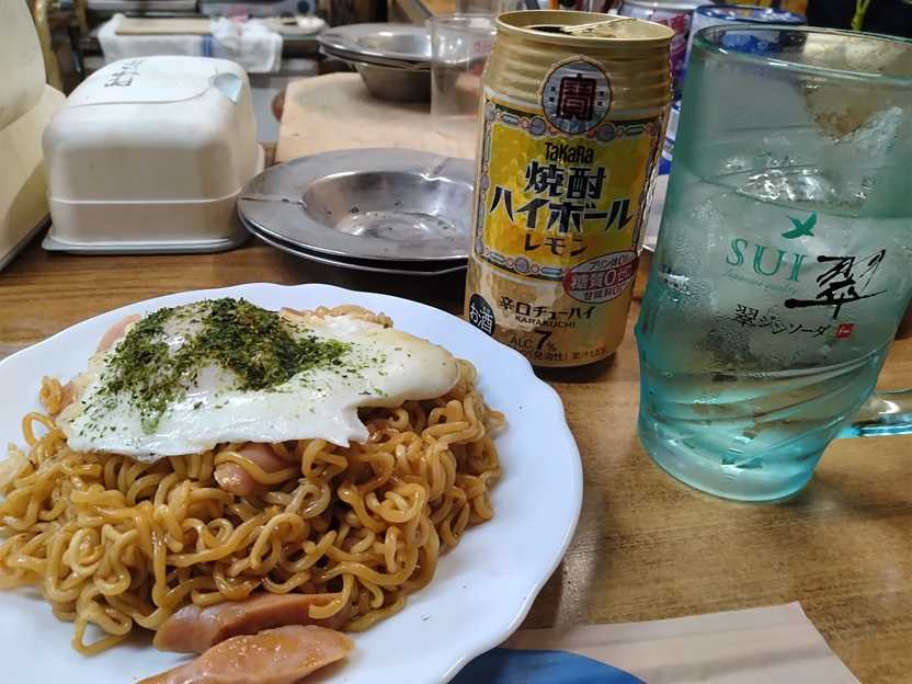 水曜日、中本酒店さんで飲みます先客はK隊長、Iさん、O田さん、Yさん、Tさんというわけで先日の麻雀の反省会の続きと褒め合い全く思っても無い事をよくも言えるな腹が減ってたので日清焼きそばを注文したその出来上がりにいちゃもんをつけるYさん自分の時はパサついていたと、ほんまにしょうもないかまってちゃんもほどほどにね