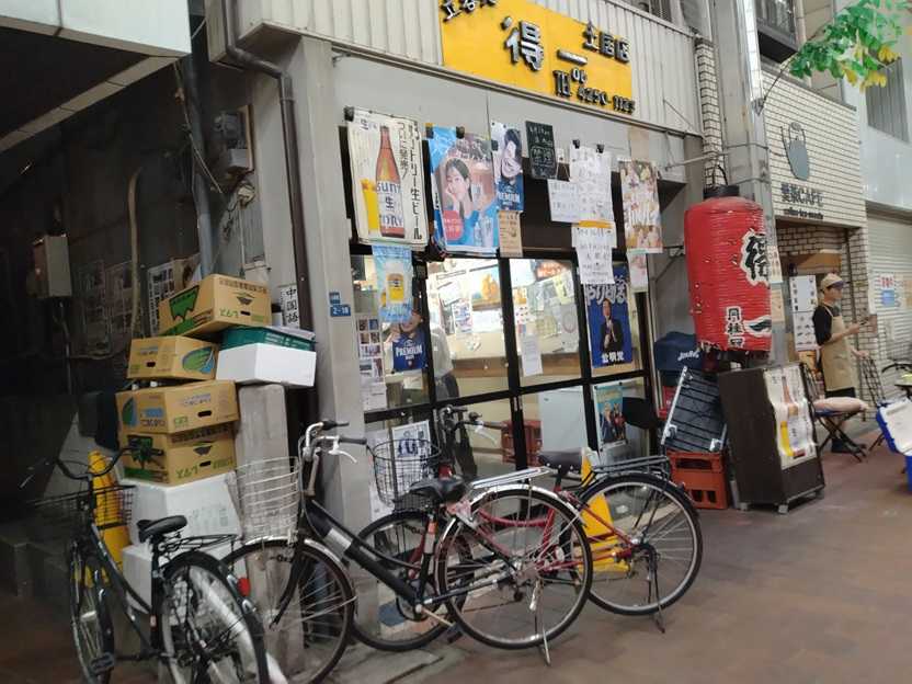 競馬の一人反省会は土居駅近くの「得一」さん着いたのは6時半くらいであった入店時に店長から生ものは売り切れたと聞いた、売り切れ早過ぎというわけでアテは鶏ハートたれ焼、とゲソ塩焼き金麦とジンソーダ翠この日は店のある商店街のお祭りで露店やキッチンカーその他、商店街の店々も店頭で普段と違う物を売ったりで結構な賑わいこの商店街もシャッターを降ろしている店が増えてきてる難しいねぇ