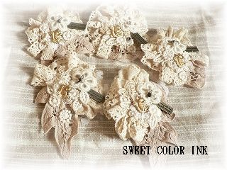 こんばんは*夜はあまりPCに向かわずにさっさと眠ってしまうのですがやりたいことが溜まっているので今日は少しだけ夜更かしです( ´_ゝ`)ゞいえ、もともと夜型なので2時3時まで起きているのは割と平気なのですが朝が起きれないと家族を遅刻させてしまうので(笑)ティアラさんに納品予定のコサージュです。紅茶染め&珈琲染めでアンティーク風に加工したレースを使って少し春らしく作ってみました。お揃いで作ったはずなんですがバテンレース使いが微妙に違う5人姉妹です♪約2ヶ月ぶりの納品なのでもう少し数をこなしたいと思うのですがなかなか・・・今回はフィードサックを使ったちょっぴりポップなコサージュも予定しております。まだ3人姉妹なので5人揃ったら画像に収めようかな♪(*'-^)-☆バッグと布小物パターンのお店*KABANHIMEERISATO SHOP作品を販売していただいているネットショップさんです。可愛いお品物がいっぱいでプレゼント選びにもオススメのお店です。ブログランキングキャスの生地付・・・なんて手作り派には嬉しいですよね♪バンビの帯見つけちゃいました★可愛い~~~