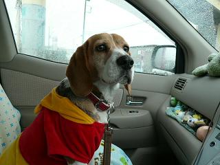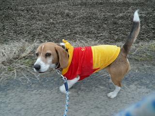 昨日からリビングのが勝手に消えたり、ついたり、ラジバンダリ。昨日だけで5回。今日も昼までに4回。しかも一番観たい時に消えちゃうの。午前中、カスタマーセンターに言われたとおりやってみたけれど再度したら ”蛍光灯を交換しましたか?”(←_→)??蛍光灯交換したらテレビが勝手に消えたりするのどうやらマニュアルに書いてあるらしいけど、そんなテレビ嫌だよ。そこから怒りが爆発し、カスタマーセンターvsだるまになりました私の決め技が ”今晩の犬の番組中、消えたらどうするのよ!”これに対しカスタマーセンターは ”それは嫌ですね、申し訳ありません。”三十過ぎてこの決め技、何だか負けた気がするぅ・・・折り返しかけてくるはずの修理担当、二時間半たっても電話がないんですが、SONY、しっかりして下さい。本日の太郎院長、新たな職場を探しているようでこんな服を着てお散歩です。 ねずみの国で働きたいみたい。警備の仕事はきつかった様子です。忘れた頃に胃が痛くなるけれど、快気祝いは近いよ。でも後半月は禁止令がでてるんだなぁ・・・