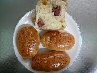 だるまベーカリー開店ですチーズパンとサマーソーセージ&チーズ食パンを作りました。サマーソーセージは柔らかめのサラミみたいなの。いつもアメリカの親友に送ってもらってます。酸味があって初めて食べたときは大丈夫なのって思ったけど、はまる味です。 写真撮るの忘れて食べちゃったのでこれだけ・・・好評につき只今2回目のパンを発酵待ちです。