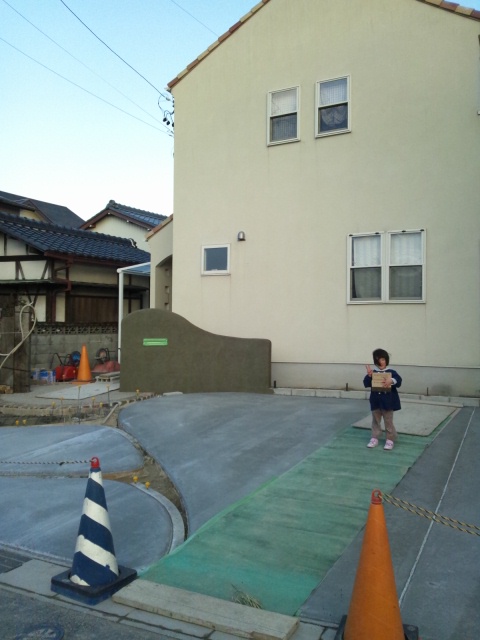 家が建ってから早5年が経ちますが只今、我が家の駐車場、玄関まわりはコンクリートで固める為工事中です。玄関から遠い方から順番に出来上がってきています。4日ほど前から、玄関のすぐ下を作業してもらっていて、玄関前は一本橋を渡っての通行になっています。私はドンくさいので、落ちないか自分の心配していた所、10歳の息子が「今日、橋の下におちた。」と…なんだとーー!!しかも、朝生コンを入れてもらったばかり!「足跡付いたで、直しといた。」ですって。お前がやって、直っちゃうなら職人はいらないんだよ!なんてハプニングもありつつ、行程はどんどん進んでいきます。寒い中本当にご苦労様です。完成したら、玄関アプローチに何か飾りたいな~(*^。^*)雑貨に興味のある方はこちらかわいい雑貨のお店Ohanayasan→http://zakkaohana.com/