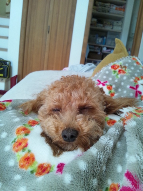 うちの愛犬「メリ」は自分の事を人間と思っているのか、家族の誰かと一緒にねています。本当に可愛いお犬様です。トイプーちゃんは毛が抜けなくて、飼いやすいですし、お利口なので、よく飼われる理由がわかりました。カット代が馬鹿になりませんが…(私より頻繁に行ってる~!)写真に写ってるのは、うちの2番目の子です。湯たんぽ代わりで温かいので、いつも一緒に寝ています。起きている時は、文句タラタラでうるさいですが、寝顔はまだまだ可愛いです♪