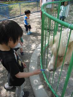 実家の親と子どもと私で毎年恒例の養老ランドに行ってきました。小さい遊園地で、ちょっとした動物と触れ合えたりして、子ども達は大喜びです! 2番目は、動物が大好きです!少しづつ餌をあげていました。(すごく時間がかかります…) 靴を履いて歩けるようになったので嬉しそうです。 暑くなると、室内遊園地であそべるんです。初めてのメリーゴーランドです。 母と子ども達です!いい写真です。 回転するとは知らずに乗って、ビックリしていました!また、来年のゴールデンウィークも行くと思います!いつまで子ども達は行くと言うかな~。父と母は楽しみにしているので、いつまでも遊んであげてほしいな(笑)