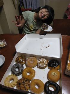 義父が名駅で働いているので、クリスピークリームドーナツを買ってきてくれました! バナナクリームやラズべりーっぽいクリームが入っているもの、いろいろな種類がありました!ほとんど、お砂糖のコーティングがしてありとっても甘いです。毎日食べたら糖尿病になりますね。また買ってきてほしいですが、借りは作りたくないのが本音ですかね…