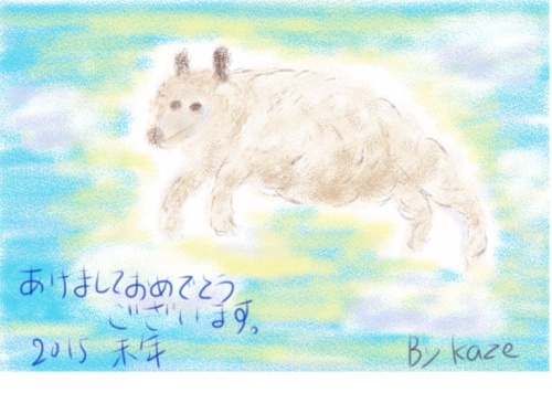 新年あけましておめでとうございます。今年もどうぞよろしくお願いいたします(^_^)☆大晦日から元日にかけては、時間があくと音楽番組を観ていることが多く、猫の自動給餌器をしながら紅白を後半から、終わればカウントダウンTV、元日開けたらウィーンフィルの中継を観るというのがパターンなのでした。カウントダウンTVの最中でゴールデンボンバーの人体書道()を観て笑った後、そういえば未年だったんだと気づき・・・なぜか卯年だと思っていたので^_^;あわてて未年イラストを描いた次第ですwあれ見なかったら、確実にウサギ描いてたと思います(まぁ、いかに年賀状をまともに書いてないかを示すようなもので、このままだと寒中見舞いに突入の見通し。今回紅白で新曲を発表する方もちらほらで、なんでもあり感満載。中森明菜さんも新曲だったんですね~久しぶりなんでDLしましたが、もう大ヒット狙いというよりは完全に明菜世代向けなテーストかな・・・アルバムになればと思うけど、一曲一曲の制作なんだろうなという雰囲気でした。いまはハイレゾ音源にも興味津々なんだけど、持ってるレコードを聴けばそっちにハマるのかな、と思ったりしたのでした。と、新年の抱負も何もない適当すぎるblogでスタートでございます。2015年が皆様にとっていい年になりますように・・・☆人気ブログランキングに参加しています。トップページのバナーをクリックして下さると嬉しいです。ランキング参加中です。励みになります、ポッチをお願いしますミステリー小説 ブログランキングへ人気ブログランキングへにほんブログ村にほんブログ村へも参加しました・・・よろしくお願いします。おかげさまで、20位以内です。みなさまありがとうございます☆連載ミステリー『祝勝会殺人事件』は、無料メルマガ『まぐまぐ!』 でも配信中です。登録はこちらから:『Kazeのミステリ通信』@kaze_uniでツイートしています。更新は適当です・・・ フォロー宜しくお願いいたします。☆☆☆☆☆☆☆☆☆☆☆☆☆☆☆☆☆☆☆☆☆