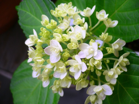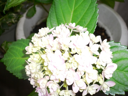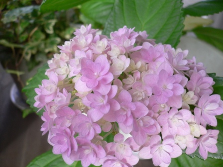 これは、一部です。お菓子群をピックアップしてみました。他にもアイス群、漬物群と・・・そうそう、奈良漬父じゃないけど頂きましたご馳走様でした。以下は我が家に、もともと生息する額アジサイです。あまりいい色合いではありません。