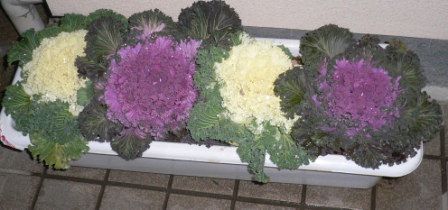 カレーをしようと思ったら人参がない。そういえばR1ヨーグルトもない。マルナカの店頭に葉ボタンが並んで置いてあった。あら綺麗。何の気なしに値札を見ると!!プランターに4株植えてあって100円!!!これは買わなくちゃ!でした。姉様に1鉢進ぜて、自己満足
