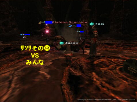 まず、黒のMちゃんがスリプガで寝かし、忍の私とLが1匹ずつ持ってってタイマン★で、暗のG君モの旦那ペアで1匹★後の3匹はMちゃんと赤のEにスリプルやバインド等などで耐えててもらい、各自倒し次第向かって倒す!みたいな(゚Д゚)