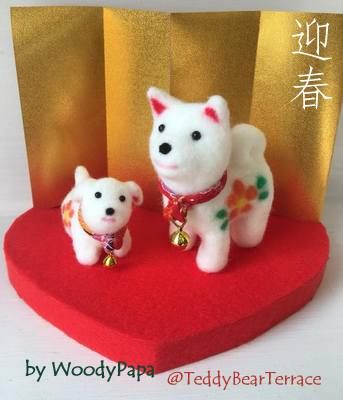 毎年恒例となった羊毛フェルトのお正月作品(by WoodyPapa)出来ました。