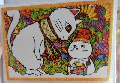 絵が光っちゃってよく見えないけど、このネコちゃんの絵には、物語があって