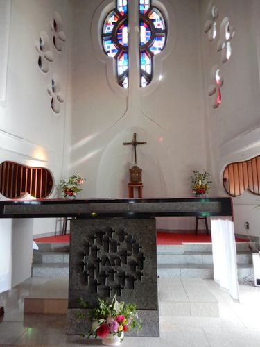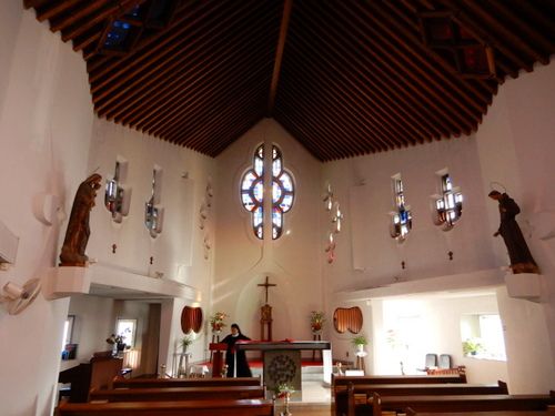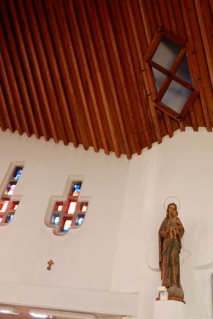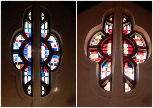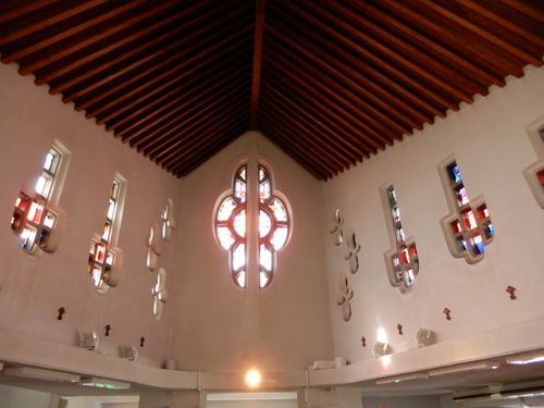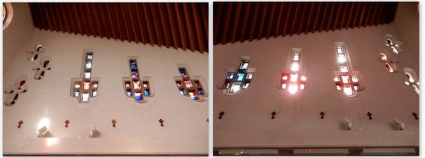 ステンドグラスから光が入る教会内、入って見てよかった~と思いました。