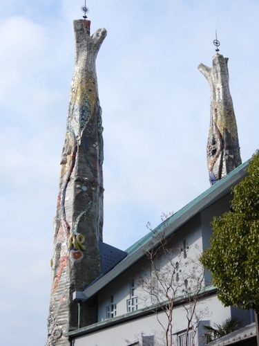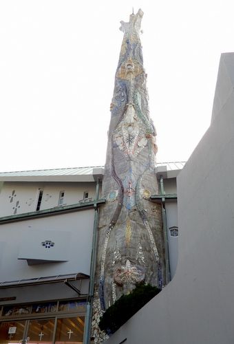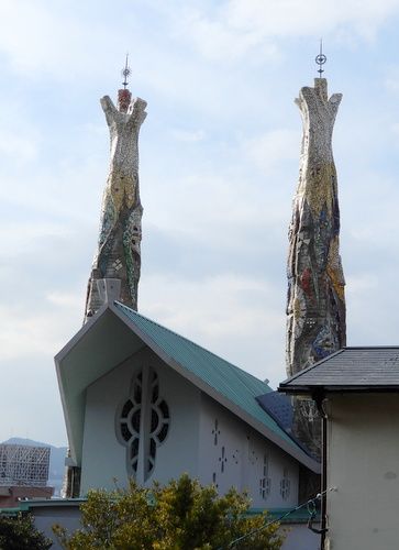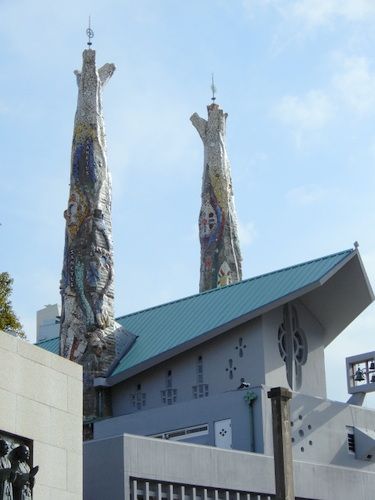 左の塔は、祈りと賛美の塔。右の塔は、聖母マリアの象徴、避雷針には勝利の王冠。