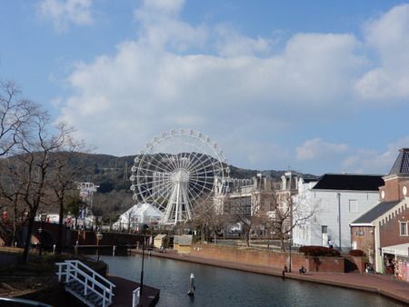 ここからも観覧車、見えます。レインボーな観覧車や、赤い観覧車もいいですが、