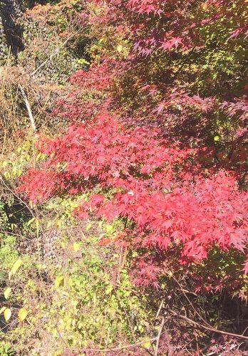 さ、今日もがんばろう。工房の窓からも、紅葉が楽しめます。すごいな~、奥多摩。