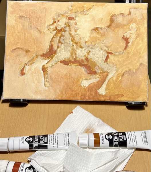ローシェンナーとバーントシェンナーで陰影を付けて行きます。