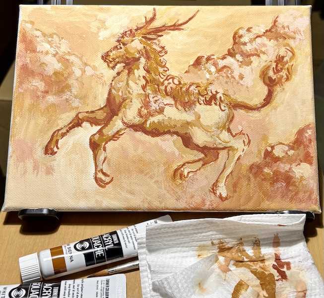 筆の跡もムラも気にせず描くのは気持ち良く、これで完成!だったらなんと幸せな事でしょう。