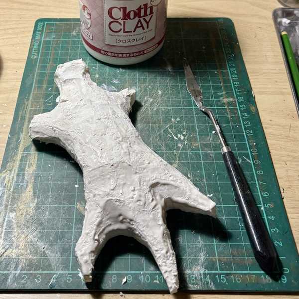 ある程度カットしたらクロスクレイをペタペタと塗って行きます。