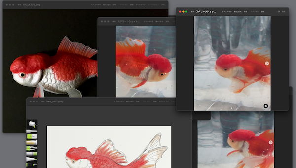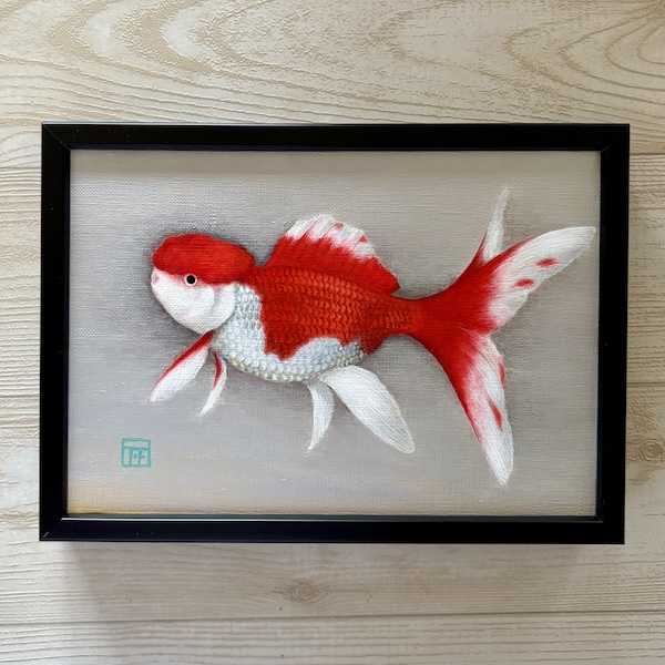 あと一枚残っているSM(サムホール)のキャンバスに金魚の丹頂を描こうと思います。頭部に特徴的なコブのある可愛い金魚です。これは以前甥っ子にプレゼントする為にフィギュアを作った金魚で、元の参考動画も甥っ子が飼っている金魚からもらいました。画像を参考にするにも動画をスクリーンショットして画像にするのでなかなか思い通りの画像が撮れません;汗。なのでデッサンを描くにもベースの形は参考にしますがポーズなどはほぼ想像で描いていきます。動いている尾の形がわかりにくく創作して;汗。スクショした元の動画が見つからないんだよなー。